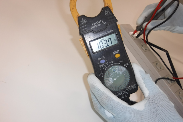 最後には必ず電圧チェックを行い、±5%の範囲内であることを確認。電気は目に見えないからこそ、最終確認が大切です。